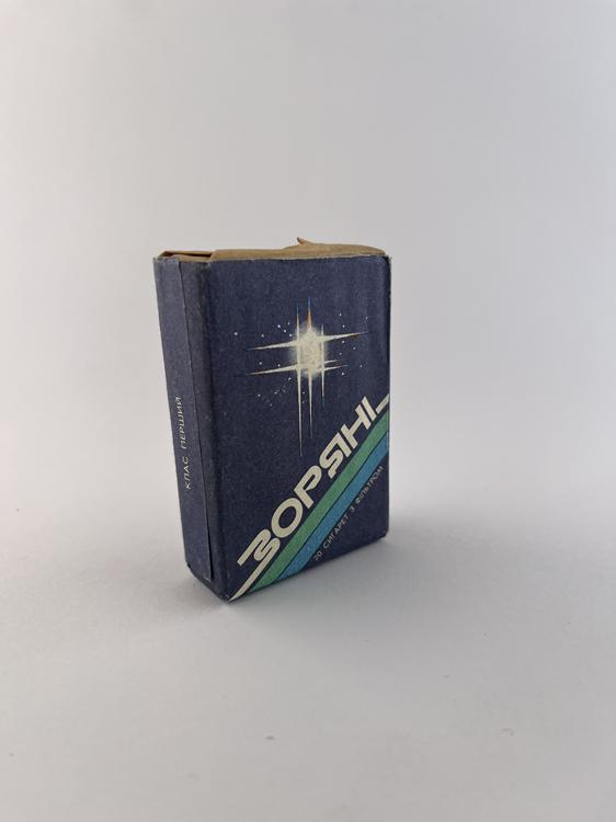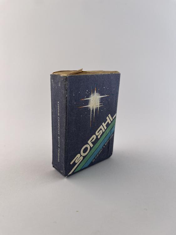 Aprašymas: „Зоряні“ cigarečių pakelis išsiskiria iš kitų sovietinių pakelių savo išraiškingu, kosmine tematika paremtu dizainu. Tamsiai mėlynas fonas su ryškia žvaigždės iliustracija centre sukuria asociaciją su kosmosu ir technologiniu progresu – tai buvo dažna tematika SSRS vizualinėje kultūroje. Įstrižai pateiktas pavadinimas „Зоряні“ suteikia pakeliui dinamiškumo ir modernumo pojūtį. Apatinėje dalyje esanti žalsva juosta dar labiau sustiprina kontrastą. Šis dizainas išsiskiria iš tipinių utilitarių sovietinių pakelių ir turi stipresnį estetinį identitetą.