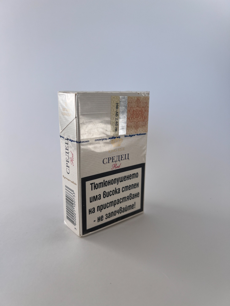 Aprašymas: „Средец Red“ (Sredets Red) – klasikinio dizaino cigarečių pakelis iš Bulgarijos. Pakuotė balta su subtiliomis horizontaliosiomis linijomis, centre – herbinis logotipas raudoname fone, žymintis „King Size“. Apačioje pateikti įspėjimai apie rūkymo žalą bulgarų kalba. Pakuotė originaliai užplombuota, su aiškiai matomu akcizo ženklu (kaina: 2.40 BGN). Pavadinimas „Средец“ nurodo senovinį Sofijos pavadinimą, todėl gamintojas veikiausiai siekė sukurti klasikinės bulgariškos tabako tradicijos įvaizdį.