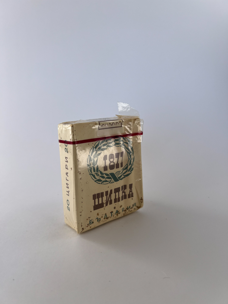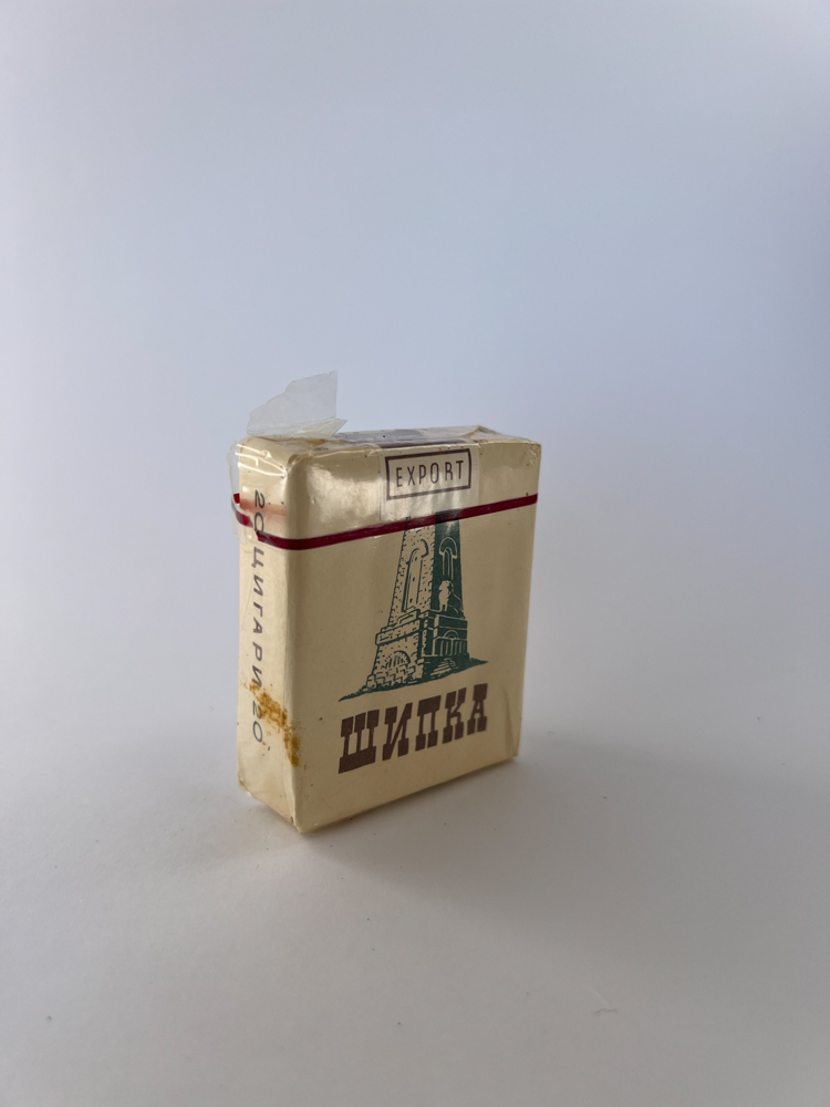 Aprašymas: Cigarečių pakelis „Shipka“ yra skirtas eksportui – tai liudija užrašas „EXPORT“ ant viršutinės dalies. Priekyje pavaizduotas Shipkos paminklas – Bulgarijos nacionalinis simbolis, skirtas Rusijos–Turkijos karo (1877–1878) aukoms atminti. Dizainas kuklus, bet aiškiai tautinis ir patriotiškas, o nugarinėje pusėje pažymėta reikšminga data „1877“ ir užrašas „България“ (Bulgarija). Pakelio spalvinė schema (kreminė su tamsiai žaliu ir raudonu akcentu) išlaikyta paprasta ir funkcionali.