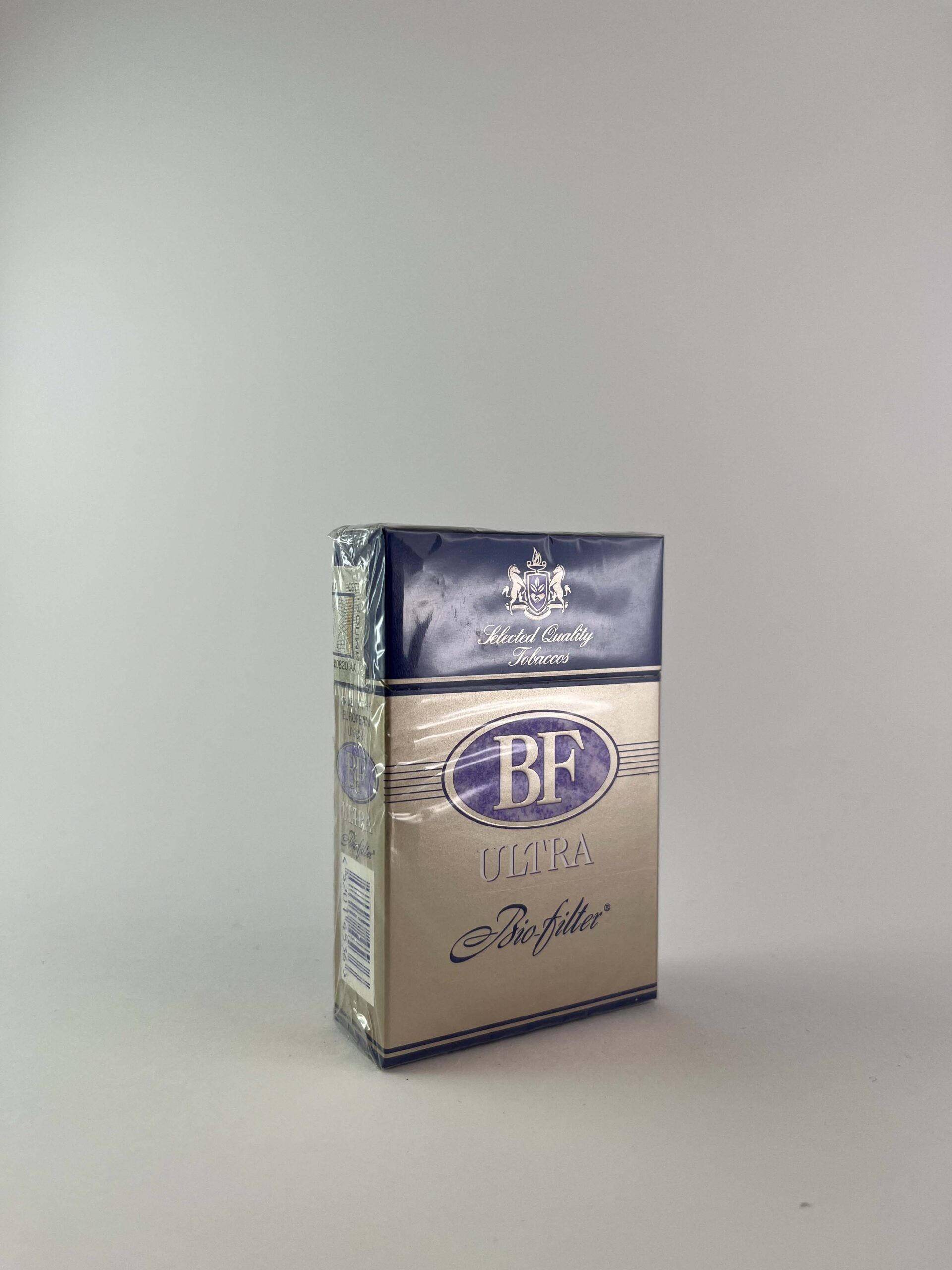Aprašymas: BF Ultra „Bio-filter” cigarečių pakelis pasižymi prabangiu dizainu, kurio pagrindinės spalvos yra auksinė ir mėlyna. Pakelyje akcentuojama speciali „Bio-filter” sistema, kuri, anot gamintojo, sumažina kenksmingų medžiagų kiekį dūmuose. Pakelis turi aukštos kokybės emblemas ir tekstą, kuris pabrėžia išskirtinį tabako skonį. Sveikatos įspėjimai pateikiami pagal standartus, išryškinant rūkymo pavojus.