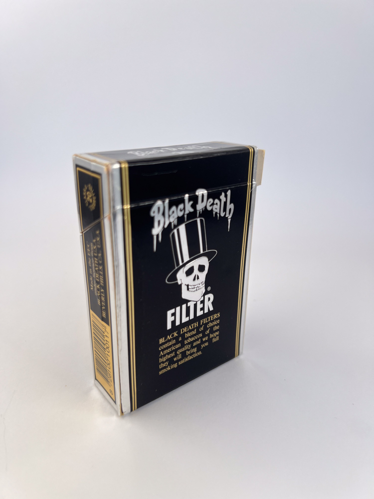 Išskirtinio dizaino pakelis su juodu pagrindu ir baltai auksiniais akcentais. Centre – firminis „Black Death“ logotipas: kaukolė su cilindru ir išskirtiniu šriftu parašytas prekės pavadinimas. Minimalistinis, bet itin įtaigus vizualinis sprendimas sukūrė vieną iš labiausiai atpažįstamų cigarečių pakuočių XX a. pabaigoje.