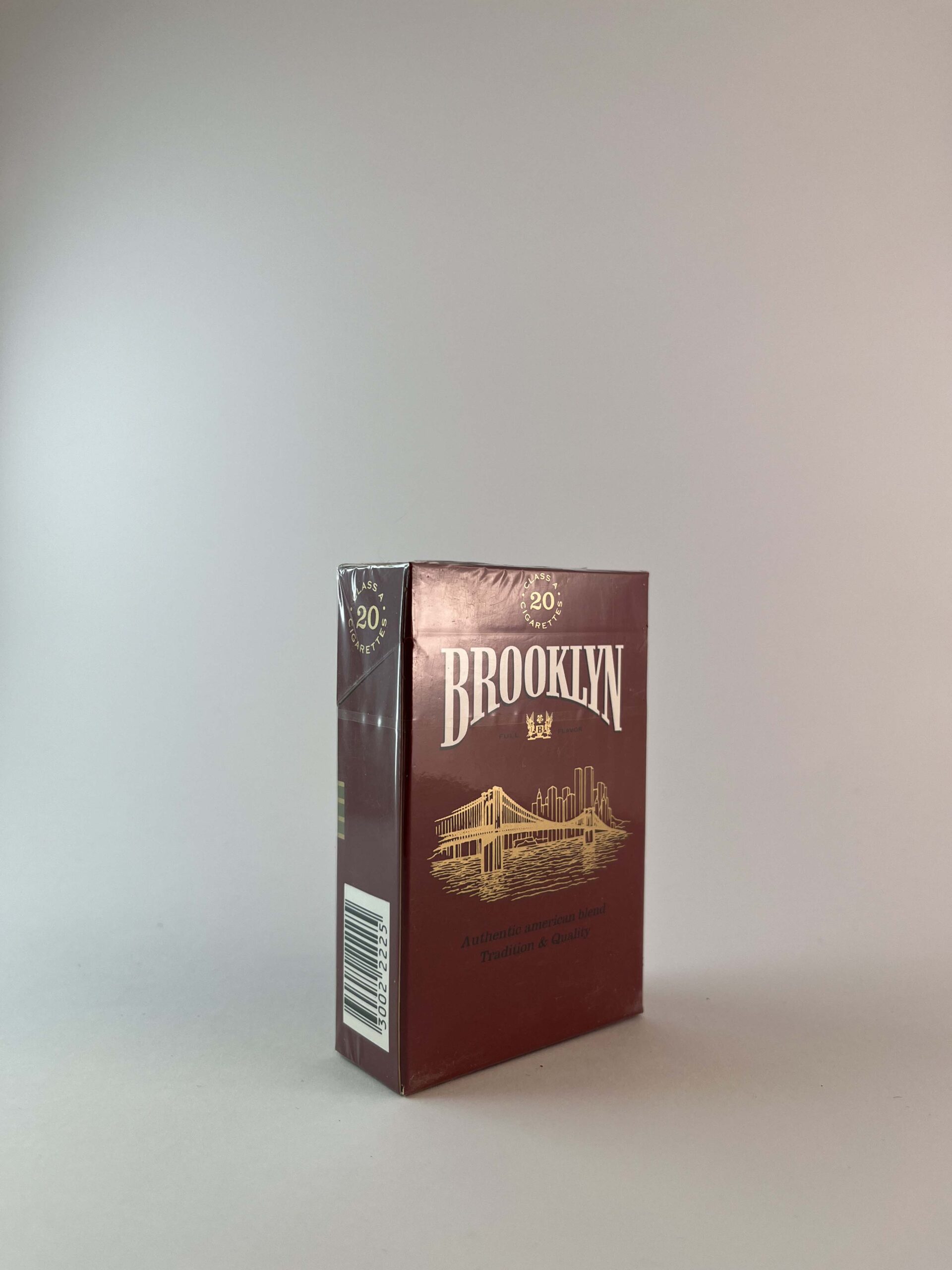 Aprašymas: Šis Brooklyn cigarečių pakelis yra ryškiai rudos spalvos su aukso spalvos detalėmis, simbolizuojančiomis Niujorko tiltą ir urbanistinius motyvus, kurie perteikia Amerikos tradicijas ir kokybę. Dizainas primena senovinį stilių, pabrėždamas „authentic American blend” frazę, kuri pabrėžia amerikietišką tabako mišinį. Pakelis skirtas prabangos mėgėjams ir vertinantiems unikalų stilių.