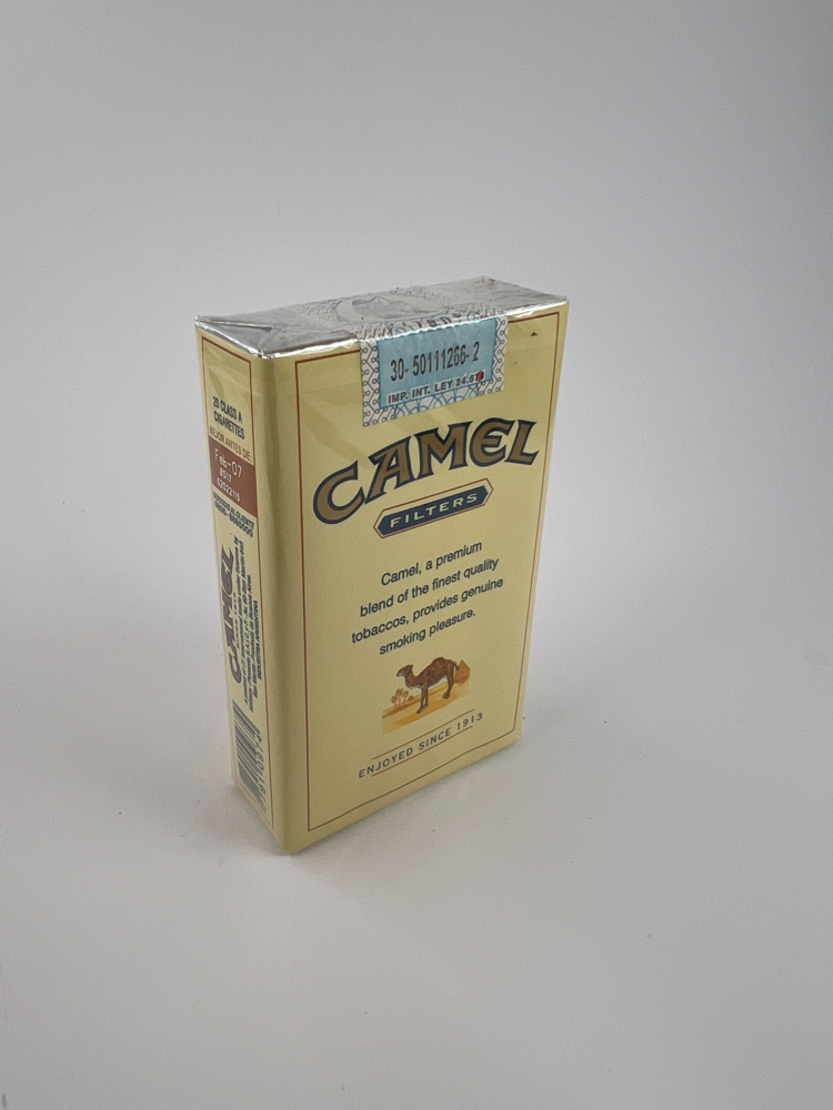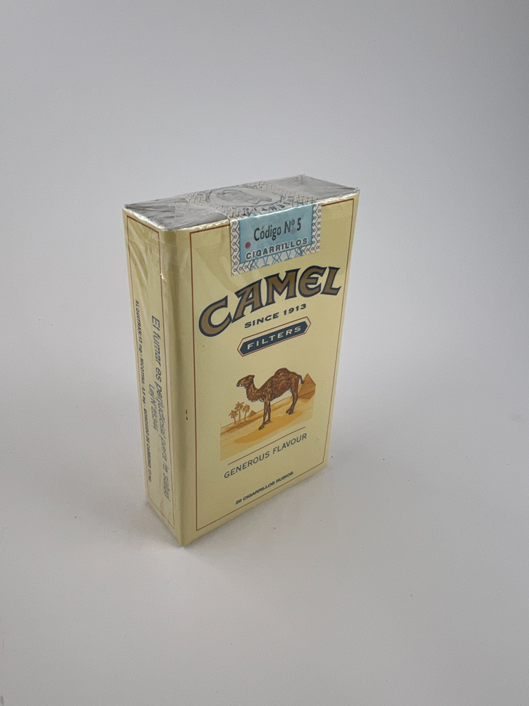 Šis „Camel Filters“ cigarečių pakelis pažymėtas užrašu „Generous Flavour“ ir pasižymi klasikinio Camel dizaino variacija. Priekyje matomas kupranugaris dykumos fone, o viršuje nurodyta „Since 1913“. Gale pateiktas aprašymas anglų kalba apie produktų kokybę ir malonumą. Akcizo lipdukas su užrašu „Código N° 5 CIGARRILLOS“ rodo, kad tai meksikietiškas leidimas, skirtas vietinei ar regioninei rinkai. Pakelis išsiskiria subtiliu retro stiliumi ir išlaikytu vientisumu.