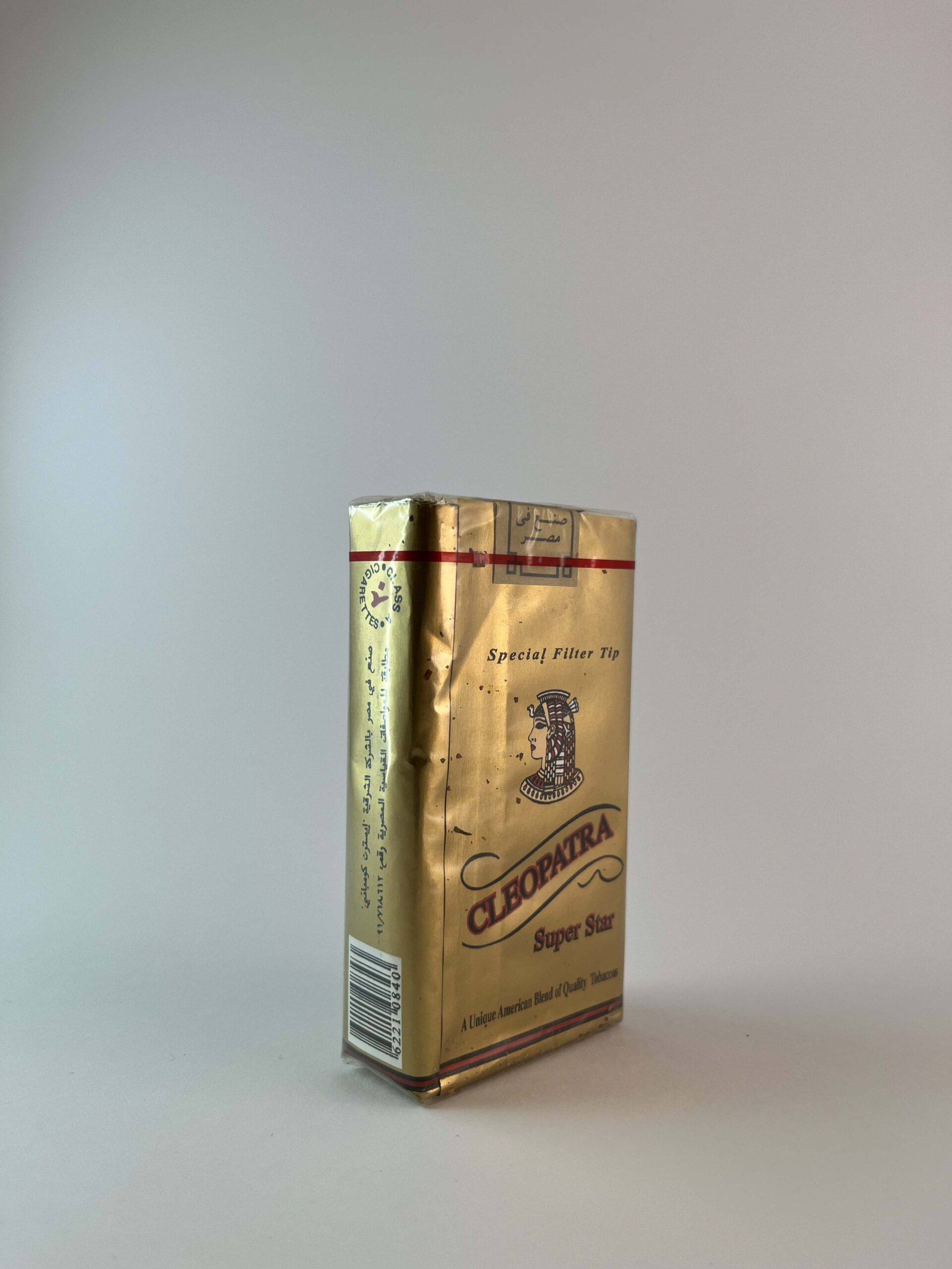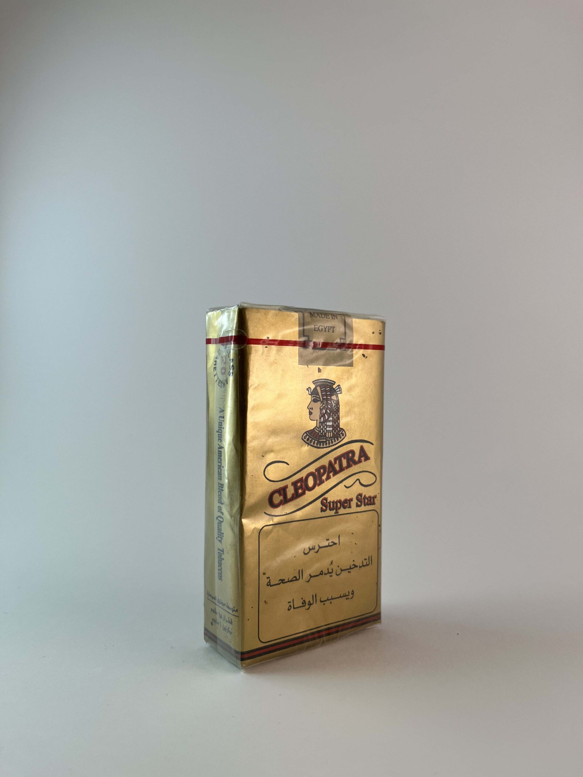 Aprašymas: Cleopatra Super Star cigarečių pakelis yra elegantiško auksinio dizaino su Egipto tema. Pakuotės centre yra egiptietiškas faraono atvaizdas ir prekės ženklas „Cleopatra“. Užrašai pateikiami arabų ir anglų kalbomis, nurodant šio produkto kilmę Egipte. Pakelyje taip pat yra sveikatos įspėjimai arabų kalba, kurie įspėja apie rūkymo žalą sveikatai. Auksinis dizainas suteikia šiam produktui išskirtinumo.