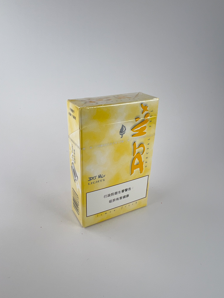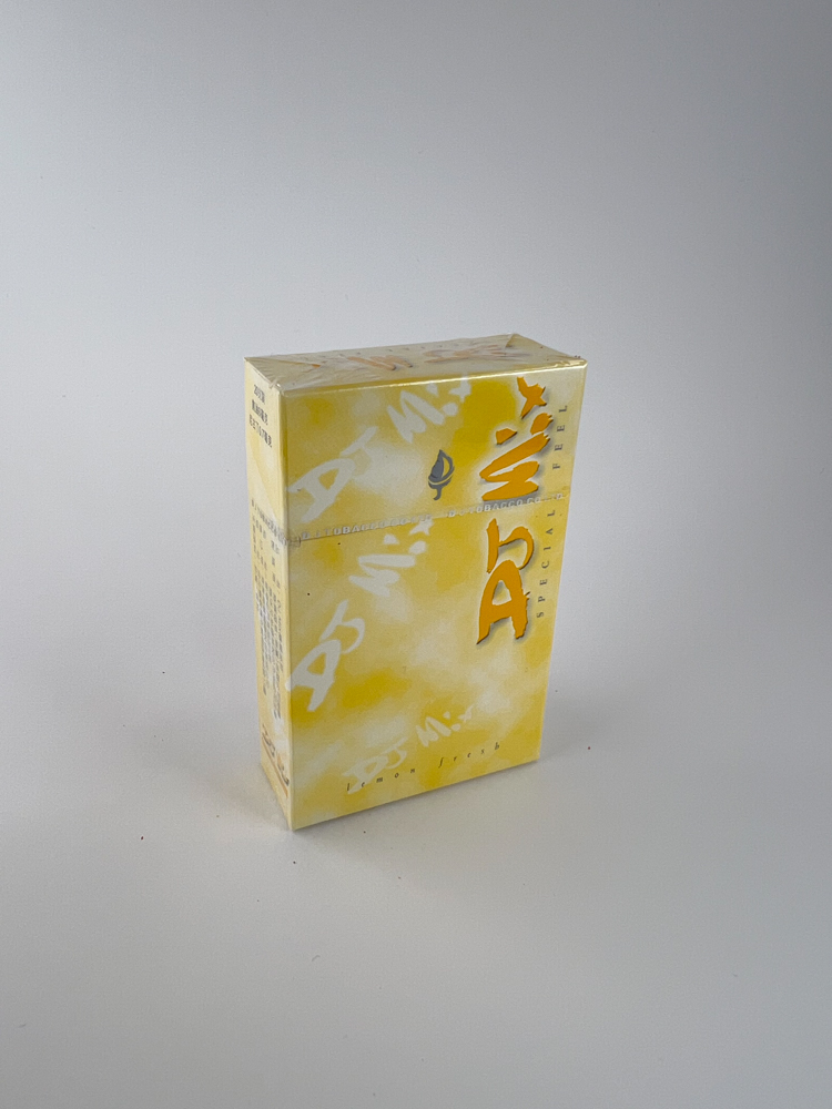 Aprašymas: Šviesiai geltonas paketas, matinio atspalvio, su stilizuotu kinišku ženklu ir užrašu „Special Filter“. Pakartoja pavadinimas „DJ M’s“ ir natūralios citrinos tematikos elementai. Viršuje – kinų kalbos įspėjimas. Celofanuotas, be mechaninių pažeidimų, labai gera būklė.