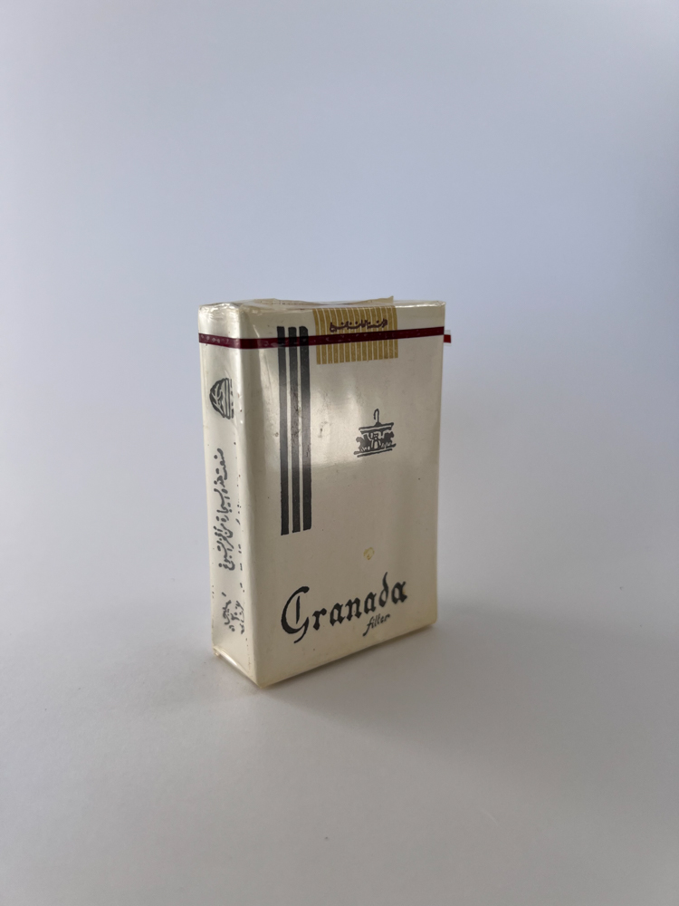 Aprašymas: „Granada Filter“ yra klasikinis Artimųjų Rytų tipo cigarečių pakelis, pasižymintis minimalistiniu, kreminės spalvos dizainu. Ant pakelio matomas Damasko tabako fabrikų ženklas ir arabų kalbos užrašai vienoje pusėje, o kitoje – lotyniškai išrašytas pavadinimas „Granada filter“. Trijų vertikalių juodų linijų motyvas bei raudona viršutinė juostelė suteikia šiam pakeliui išskirtinę vizualinę estetiką, būdingą 9-ajame dešimtmetyje Sirijoje naudotai dizaino kalbai.
