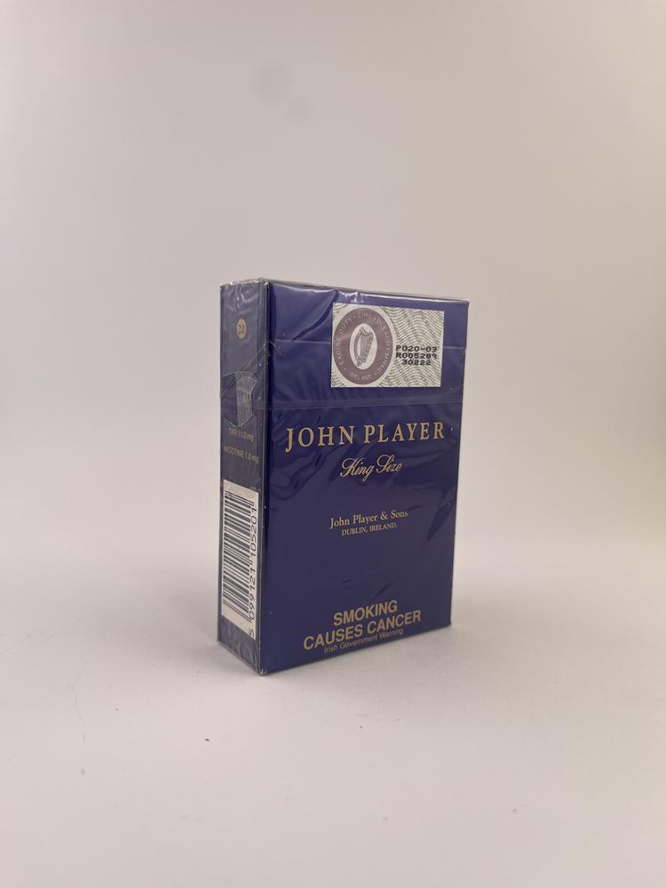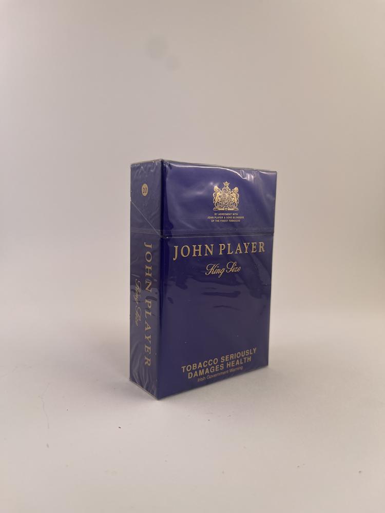 Tai klasikinis John Player King Size cigarečių pakelis, išleistas Airijoje – viena iš nedaugelio šalių, kur šis istorinis britų prekės ženklas buvo gaminamas lokaliai.