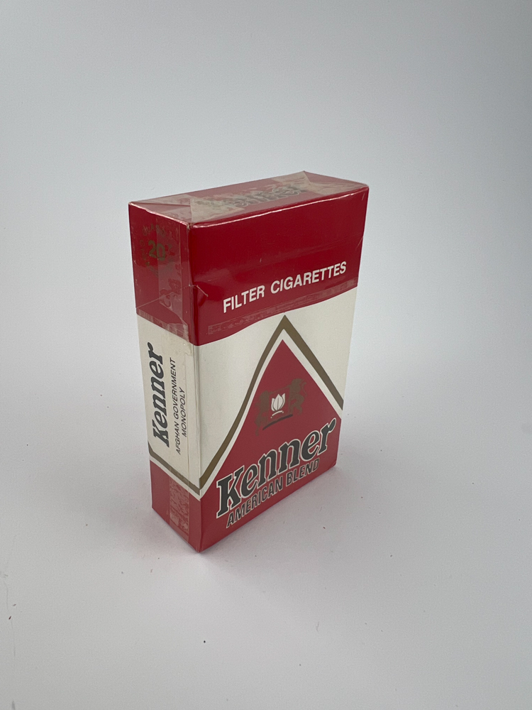 Aprašymas: Kenner American Blend cigarečių pakelis pasižymi kontrastingu raudonos ir baltos spalvų dizainu, su aukso kontūru ir logotipu centre, kuriame pavaizduota liūto figūra ir gėlės simbolis. Pakelio viršuje ryškiai pažymėta „Filter Cigarettes“, o šonas žymi, kad produktas priklauso Armėnijos valstybinio tabako monopolio gamybai. Vizualiai panašus į klasikinius amerikietiško tipo cigarečių pakelius, tačiau skirtas vietinei arba eksportinei rinkai.