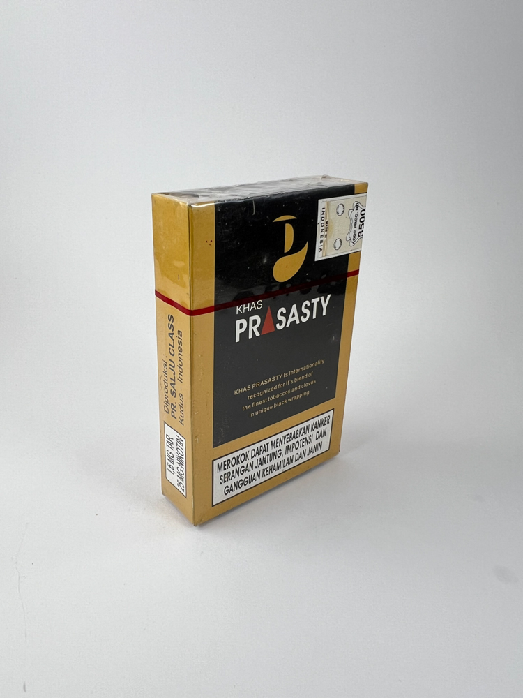 Aprašymas: „Khas Prasasty Flavour“ yra indonezietiškos kretek cigaretės, gaminamos su gvazdikėlių ir tabako mišiniu. Pakelis dekoruotas juodai auksine spalvų gama, pabrėžiant prabangos įvaizdį. Ant priekio ir nugarinės pusės pabrėžiama, jog šis prekės ženklas tarptautiniu mastu pripažintas dėl ypatingo tabako ir gvazdikėlių derinio. Ant pakuotės matomas tradicinis indonezietiškas sveikatos įspėjimas bei vietinė akcizo žyma.