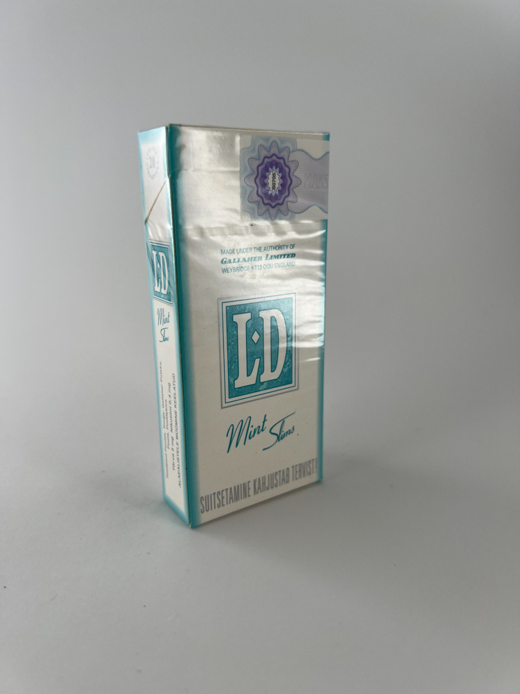LD “Menthol” pakelis pasižymi šviesiu, baltos ir mėtų spalvos dizainu su aiškiu LD logotipu centre ir minimalistiniu maketu, būdingu 2000–2010 m. mentolinėms cigaretėms. Pakelis skirtas Estijos rinkai, ką atskleidžia estiškas įspėjimas. Celofanuotas, puikiai išlaikytas, be įlenkimų ar spalvos pažeidimų. Tokie ankstesnio dizaino Baltijos mentoliniai LD leidimai šiandien tampa vis retesni, ypač geros būklės.