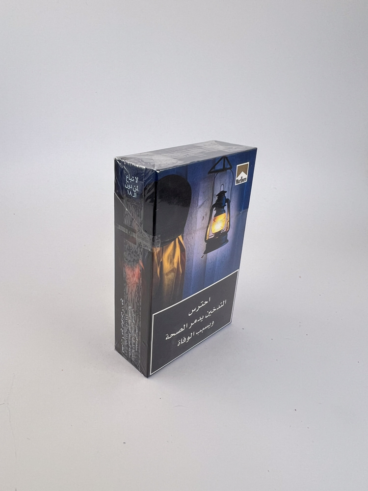 Viršutinėje dalyje išlaikytas minimalistinis „Marlboro“ trikampis su raudonu ženklu, o pakuotės šone arabų kalba pateiktas vietinis įspėjimas. Dizainas modernus, tačiau subtiliai derinantis regioninius motyvus su globalia „Marlboro“ estetika.
