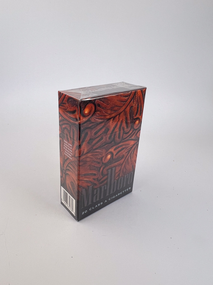 „Marlboro Middle East Edition – Wooden Relief“ išsiskiria neįprastu ir menišku dizainu, kuriame dominuoja medžio raižinius primenantis ornamentas. Rausvai rudos spalvos fonas imituoja skulptūriškai išdrožtą paviršių su lapų ir augalinių motyvų reljefu, suteikiančiu pakuotei išskirtinį, beveik rankų darbo įspūdį. Viršuje, tradicinėje „Marlboro“ trikampio zonoje, matomas subtilus logotipas ir klasikinis raudonai baltas ženklas.