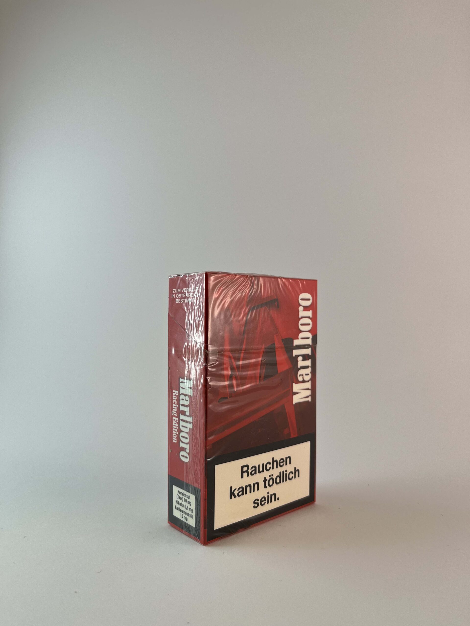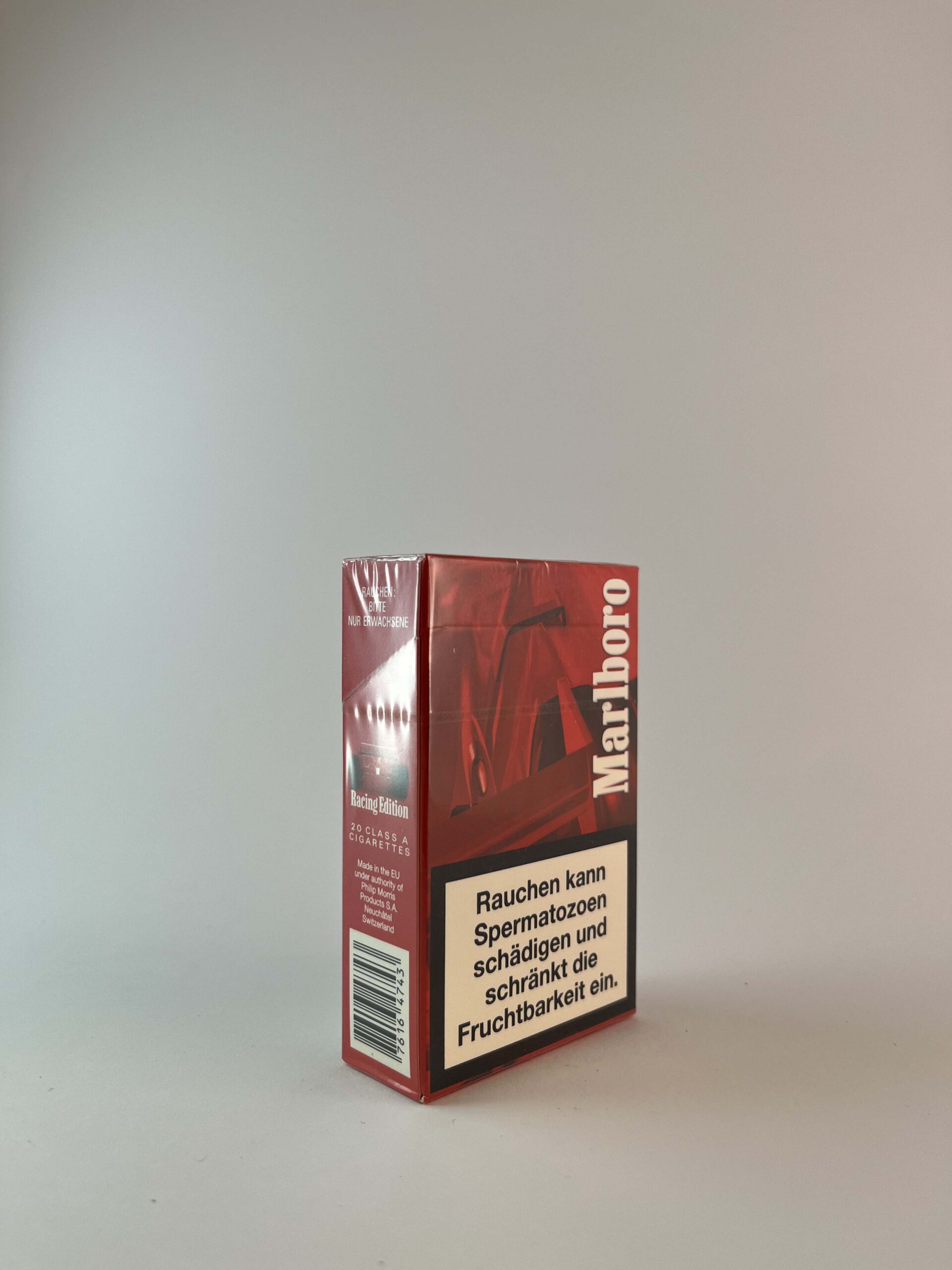 „Marlboro Racing Edition“ pakuotė pasižymi ryškiu raudonu dizainu su lenktynių tematika, pabrėžiančia kolekcijos išskirtinumą. Ant pakelio pateikiami įspėjimai apie sveikatą vokiečių kalba („Rauchen kann tödlich sein“ – Rūkymas gali būti mirtinas), o taip pat nurodyta, kad šis pakelis skirtas pardavimui Austrijoje („Zum Verkauf in Österreich bestimmt“). Pakelis gamintas pagal „Philip Morris Products S.A., Neuchâtel, Switzerland“ užsakymą.