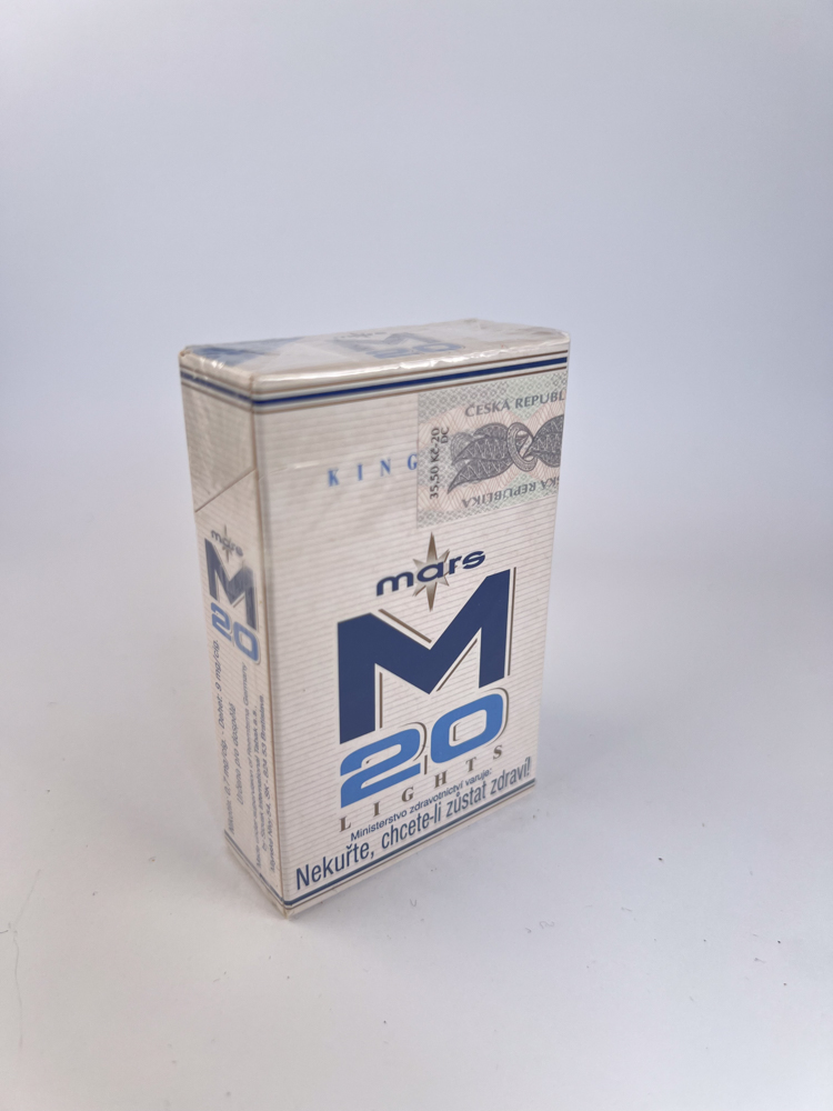 „Mars M20 Lights“ – tai vienas iš vėlyvojo Čekijos tabako pramonės laikotarpio prekių ženklų, atsiradęs po valstybinių gamyklų pertvarkos ir privatizacijos. Pavadinimas Mars simbolizuoja modernumą ir techninį progresą, o minimalistinis dizainas – baltas fonas su mėlynais akcentais – atitinka 1990-ųjų pabaigos vizualinę madą, kai cigarečių gamintojai siekė „švaraus“, šviesaus įvaizdžio, pabrėžiančio „lengvumo“ pojūtį.