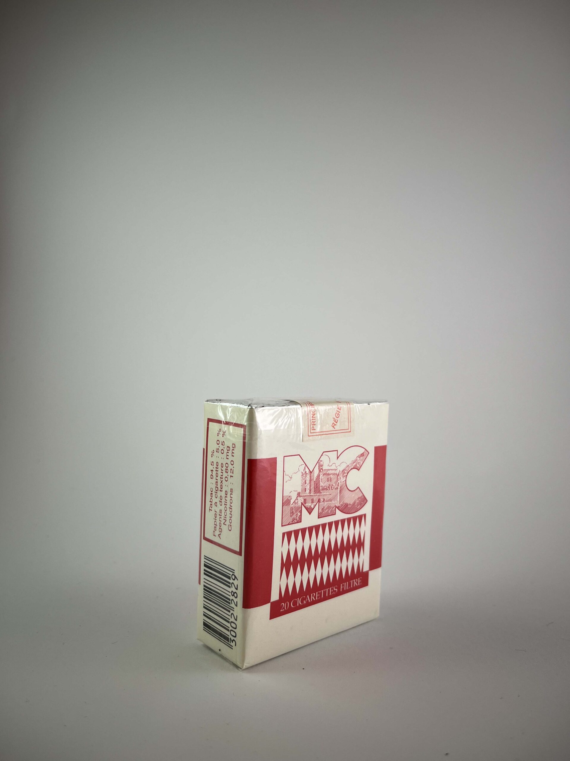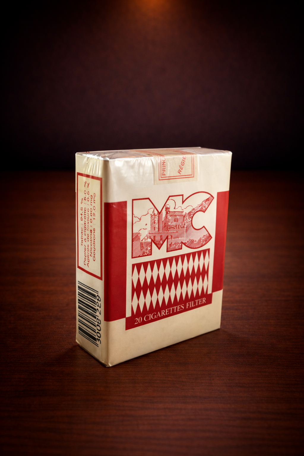 Aprašymas: MC cigarečių pakelis išsiskiria paprastu, bet prabangiu dizainu, kuris atspindi Monako įvaizdį. Baltas ir raudonas spalvų derinys kartu su Monako herbu ir deimantų raštu aiškiai asocijuojasi su Monako kunigaikštystės simbolika. Užrašas „20 Cigarettes Filtre“ ir vietovės nuorodos pabrėžia produkto aukštą kokybę ir išskirtinį statusą. Tai yra kolekcinė retenybė, skirta specifinei rinkai, o galbūt net pagaminta ribotu tiražu.