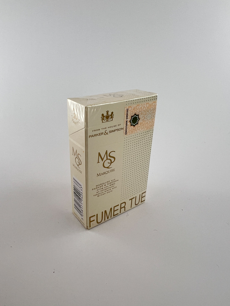 MSQ Marquise yra moderniai atrodantis kietas cigarečių pakelis, pažymėtas elegantišku auksiniu logotipu, minimalistinėmis taškomis ir aiškiu užrašu „From the house of Parker & Simpson“. Priekinėje pusėje nurodyta kaina – 19 DHS (Maroko dirhamų), o viršutinėje dalyje matomas „Douanes Marocaines“ (Maroko muitinės) lipdukas. Įspėjimai apie rūkymo žalą pateikti tiek prancūzų („FUMER TUE“), tiek arabų kalba. Dizainas skirtas vietinei Maroko rinkai, tačiau orientuotas į tarptautinio stiliaus įvaizdį.