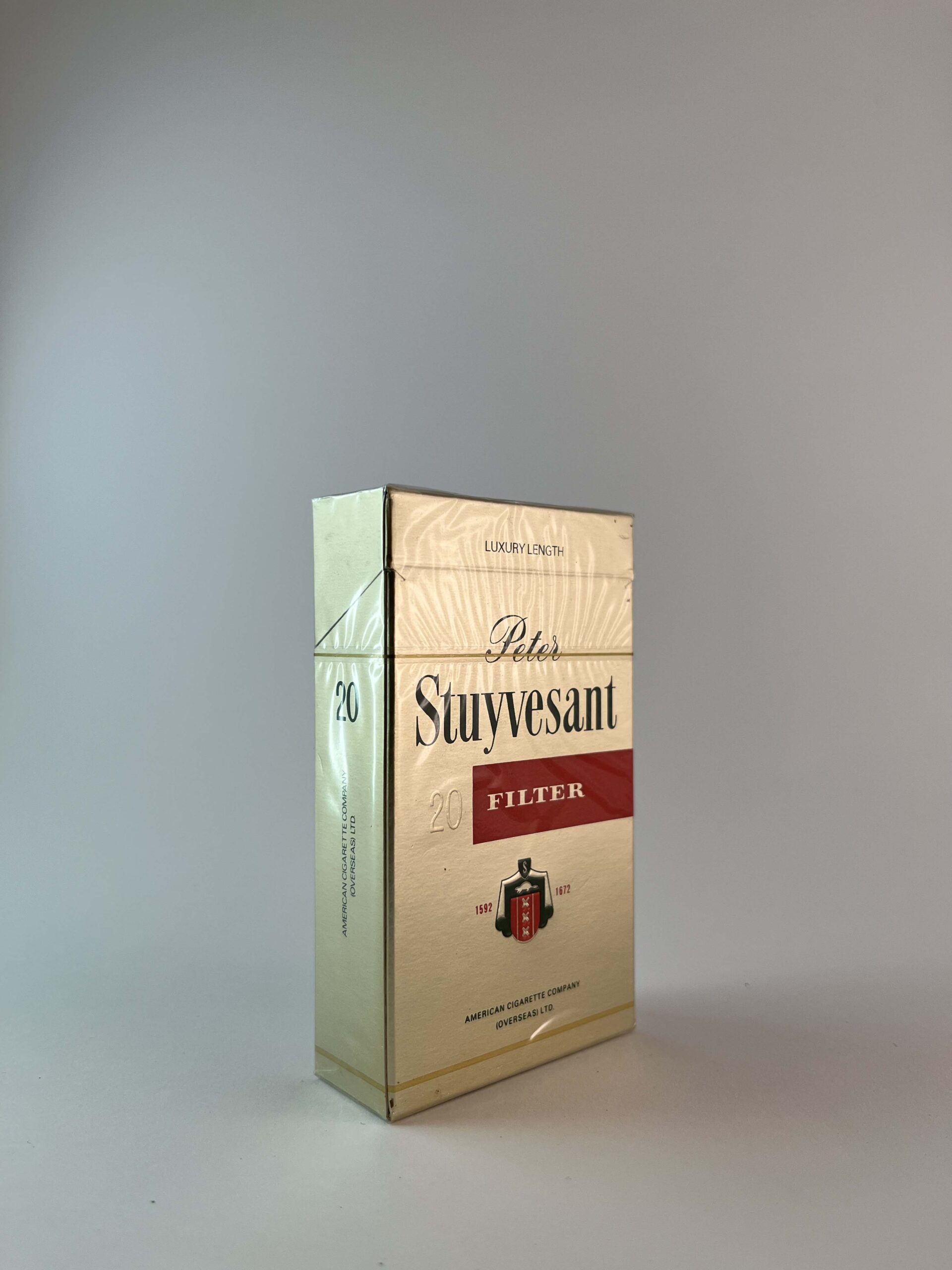 Aprašymas: Peter Stuyvesant „Filter“ cigarečių pakelis pasižymi prabangiu ir klasikiniu dizainu, su aukso spalvos pagrindu ir raudonos spalvos akcentais. Pakelyje ryškiai matomas gamintojo logotipas bei užrašas „Luxury Length“, nurodantis išskirtinę cigarečių ilgio kategoriją. Įspėjimas apie rūkymo žalą yra išdėstytas pagal tarptautinius standartus, atkreipiant dėmesį į sveikatos rizikas.