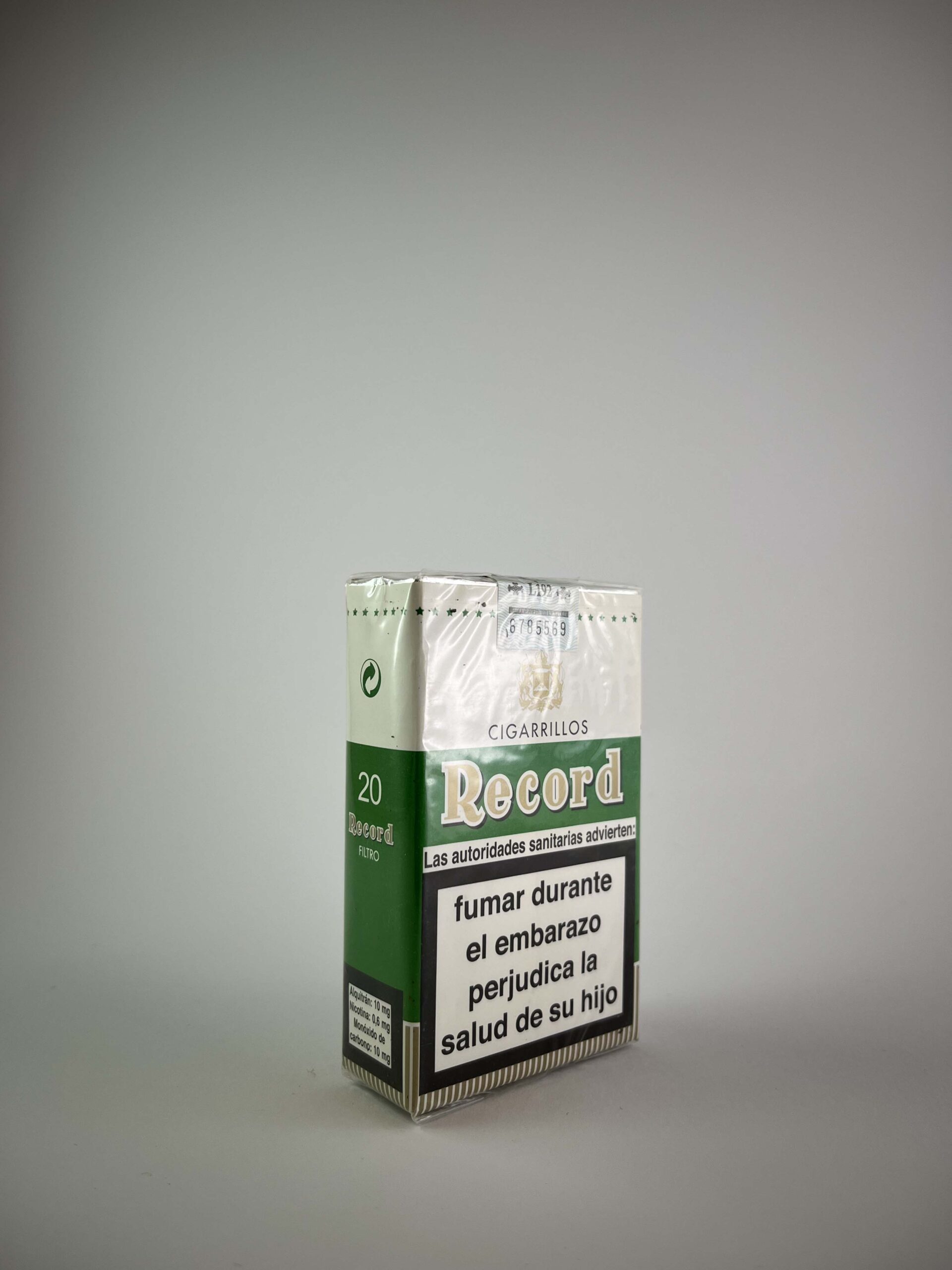 „Record Filtro“ cigarečių pakelis yra minimalistinio dizaino, kuriame vyrauja žalia ir balta spalvos. Pakuotės viršutinėje dalyje aiškiai pavaizduota „Tabacalera Española“ simbolika, pabrėžianti autentišką ispanišką kilmę. Dominuojantys užrašai ispanų kalba, tokie kaip „Fumar puede matar“ („Rūkymas gali nužudyti“), rodo laikymąsi Europos tabako reguliavimo taisyklių. Šis pakelis skirtas kasdieniam naudojimui, tačiau jo paprastumas ir gerai išlaikyta būklė gali pritraukti kolekcininkus.