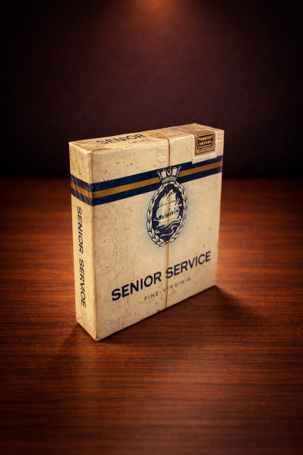 „Senior Service“ – klasikinis britų cigarečių prekės ženklas, sukurtas Gallaher Ltd. dar XX a. pradžioje. Šis konkretus leidimas – eksportinis variantas, pažymėtas užrašu “Senior Service (Overseas) to England – Made in Benevento”, kas nurodo, kad gamyba buvo vykdoma Italijoje, Benevento mieste, skirtu eksportui į britų kolonijas bei pietinės Europos rinkas.
