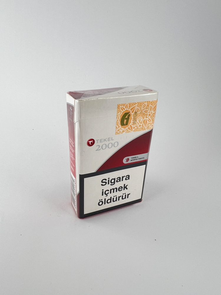 Aprašymas: Tekel 2000 yra vienas iš vėlyvųjų Tekel produktų, pagamintų prieš ar jau vykstant privatizacijos laikotarpiui, kai Tekel priklausė Turkijos valstybei. Šis leidimas pasižymi modernaus dizaino pakuote, su įspėjimais apie rūkymo žalą tiek tekstiniu, tiek vaizdiniu formatu. Viršutinėje dalyje matomas raudonas „Tekel 2000“ logotipas, o pakuotės gale aiškiai nurodyta, kad produktas priklauso „Turkish & Imported Tobacco“. Vizualiai pakelis šiuolaikiškas, su šlifuotu baltu ir raudonu spalviniu kontrastu.