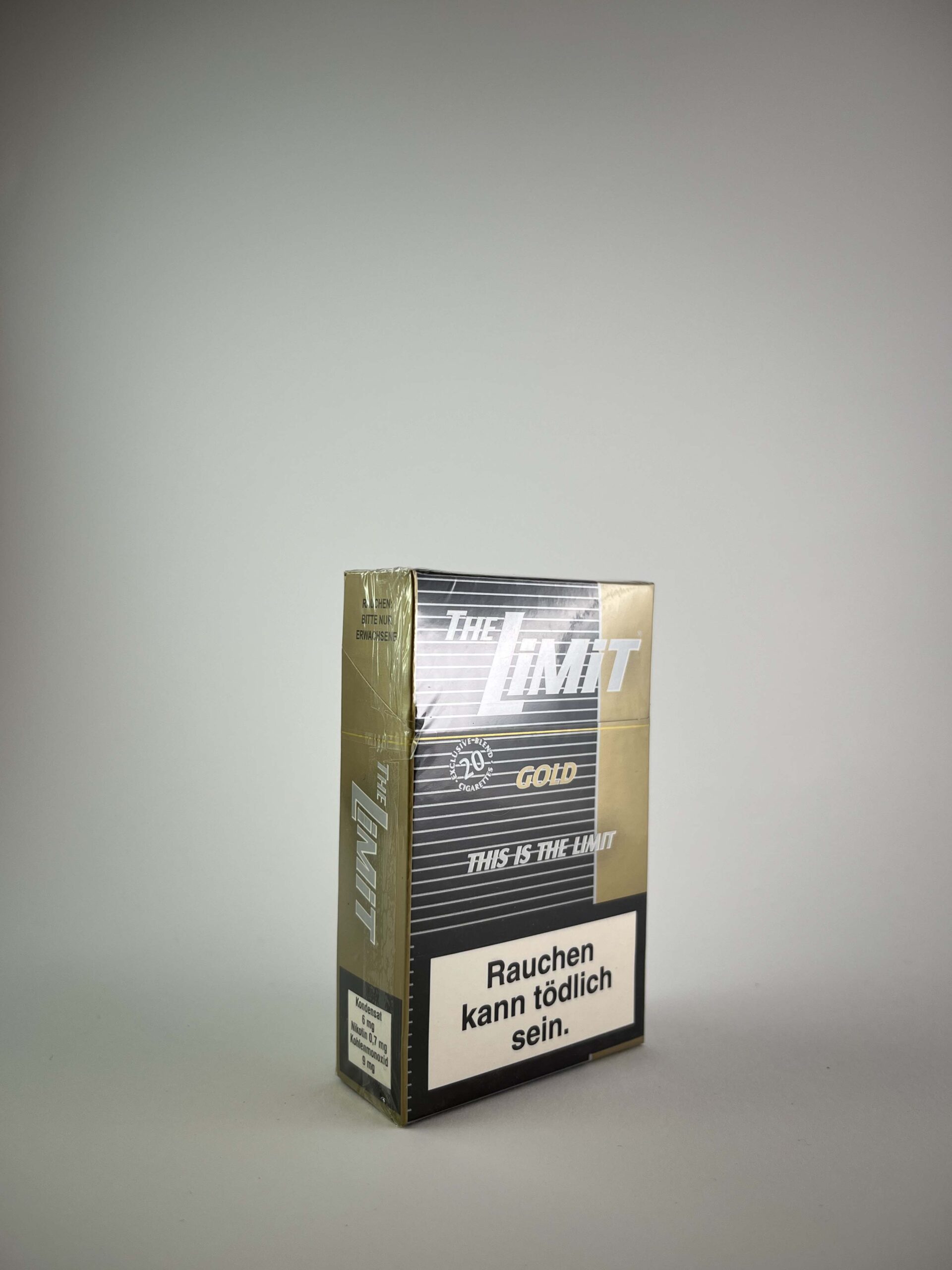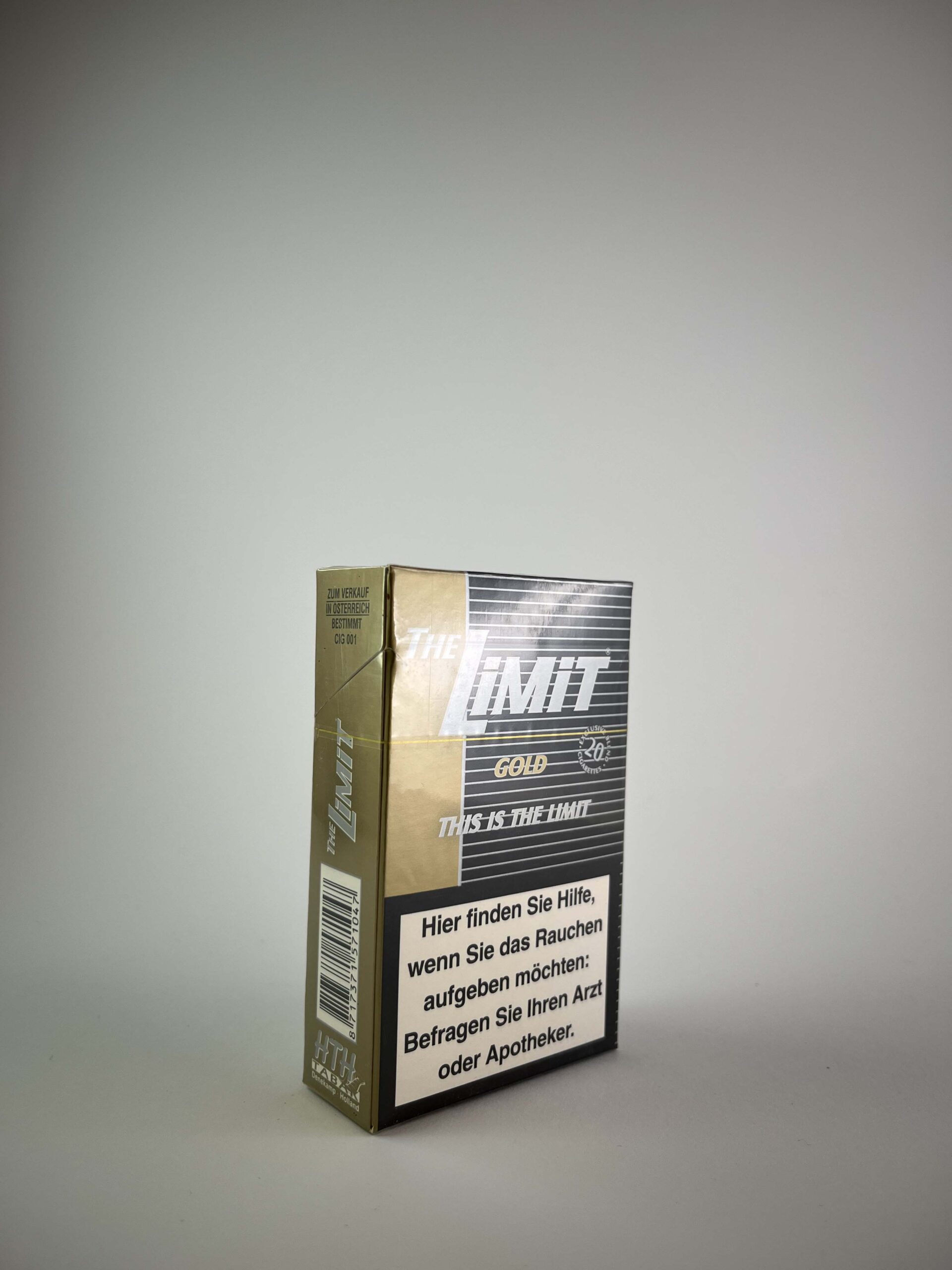 Šis „The Limit Gold“ cigarečių pakelis pasižymi moderniu ir prabangiu dizainu, kurį sudaro juodos ir auksinės spalvų derinys. Pakuotės šūkis „This is the Limit“ pabrėžia gamintojo siekį kurti išskirtinę kokybę. Ant pakelio pateikti vokiški įspėjimai apie rūkymo žalą, taip pat užrašas „Zum Verkauf in Österreich bestimmt“, nurodantis, kad produktas buvo skirtas Austrijos rinkai. Tai vienas iš įdomesnių šiuolaikinių leidimų, skirtų tarptautinėms rinkoms, turintis kolekcinę vertę dėl savo unikalios rinkos lokalizacijos.
